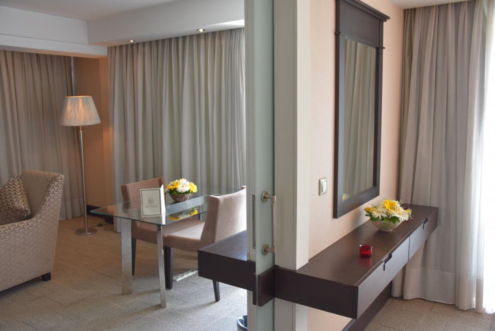 Ege Palas Business Hotel'in Suite’lerinde misafirlerin konforlu bir konaklama deneyimi edinmeleri için her ayrıntı özel olarak kurgulandı. 53 metrekarelik suitelerde özel bir oturma odası bölümü yer alıyor. Neo klasik tarzda döşenmiş odalarda, geniş pencereler ile İzmir’i kuş bakışı izlemenin ayrıcalığını yaşarken, sabah güneşinin ilk ışıklarıyla güne başlayın.